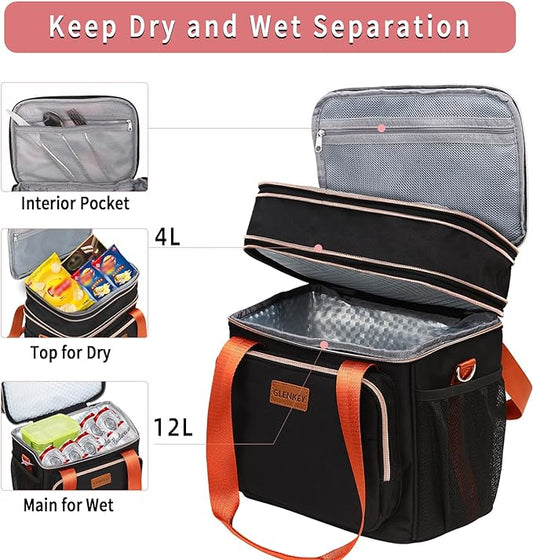 GLENKEY Expandable Insulated Lunch Box for Women Men, Double Deck Large Lunch Bag Tote Leakproof Lunch Cooler with Shoulder Strap for Adults Work Shift Outdoor Picnic Daytrip