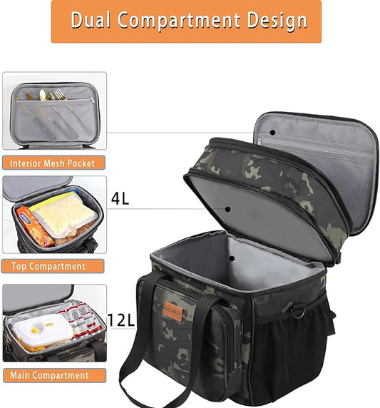 GLENKEY Expandable Large Insulated Lunch Box, Heavy Duty Lunch Cooler Bag Durable Leakproof Lunch Pail for Men Women Adults Work Shift Outdoor Picnic Camping Road Trip, 24 Can, Black-Camo