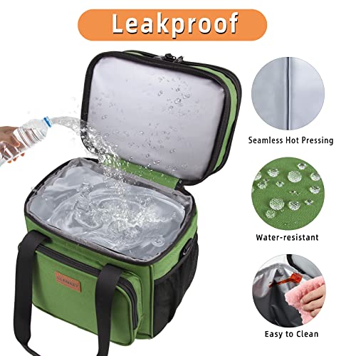 GLENKEY Expandable Large Insulated Lunch Box, Heavy Duty Lunch Cooler Bag Durable Leakproof Lunch Pail for Men Women Adults Work Shift Outdoor Picnic Camping Road Trip, 16L, Army Green